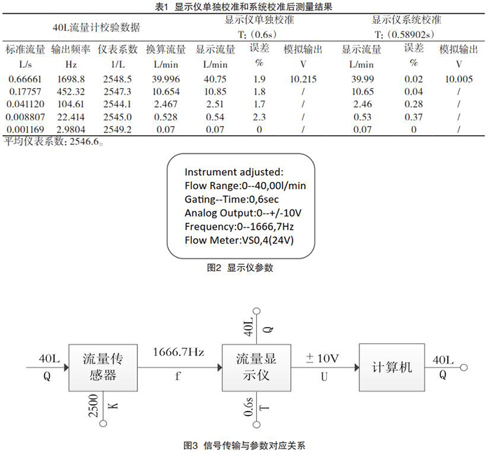 以某40L流量測(cè)量系統(tǒng)為例,流量計(jì)單獨(dú)校準(zhǔn)和系統(tǒng)校準(zhǔn)后在實(shí)際應(yīng)用中的測(cè)量結(jié)果見表1。