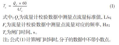 在流量計(jì)校驗(yàn)數(shù)據(jù)中任意選擇一些測(cè)量點(diǎn),用公式(1)或公式(2)計(jì)算配套流量計(jì)閘門時(shí)間系數(shù)并調(diào)整。輸入測(cè)量點(diǎn)頻率,流量計(jì)顯示流量值與測(cè)量點(diǎn)流量標(biāo)準(zhǔn)值完全吻合。由此可以判定閘門時(shí)間的計(jì)算方法是合理、正確的,這種便于操作的系統(tǒng)校準(zhǔn)方法是可行的,滿足系統(tǒng)校準(zhǔn)的要求。