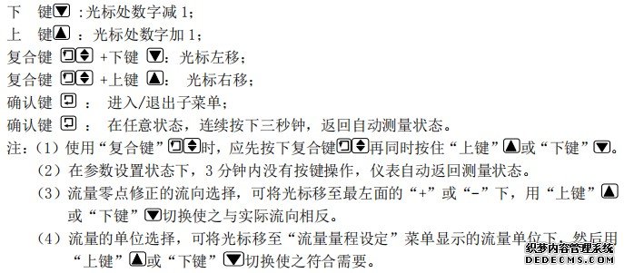 再次提醒:流量零點修正必須在電磁流量傳感器的測量管內充滿導電流體,并且流體處于靜止不流動條件下進行。流量零點的修正值是傳感器的校驗常數值,應記入傳感器的記錄單與標*。記入時傳感器零點值是以包含符號、m/s為單位的流速值。