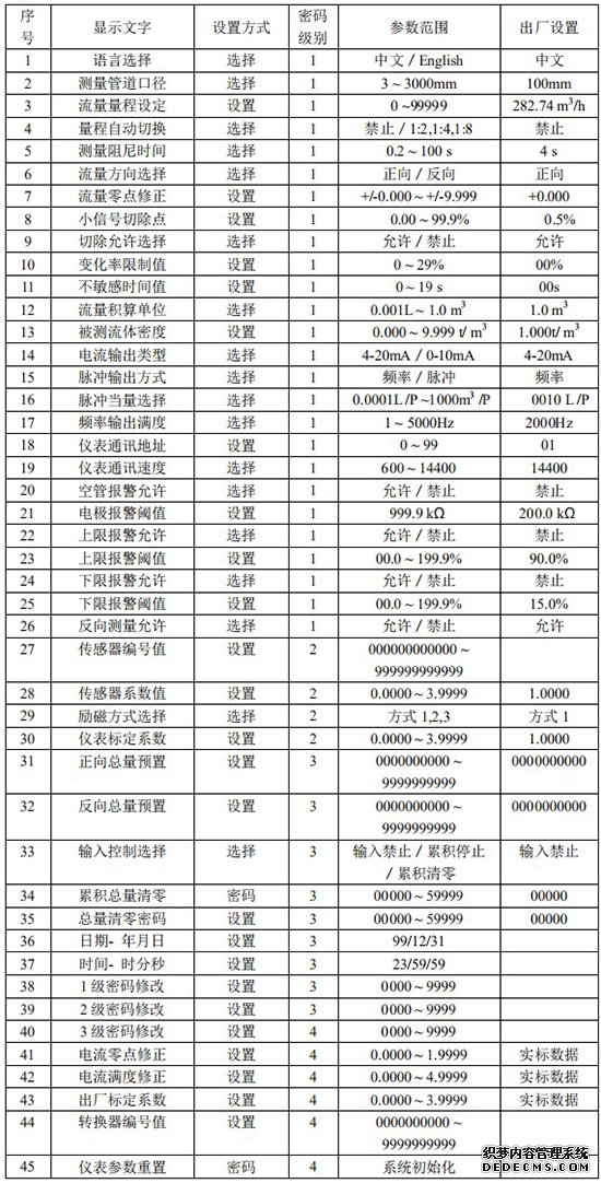 插入式電磁流量計參數設置